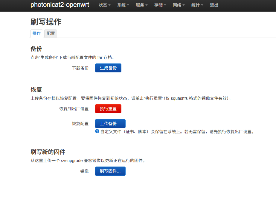 注:Photonicat 2 可进行同类型固件在线更新,用户可选择保留配置。 (若需要更新第三方固件,请参考:Photonicat 2 固件USB线刷更新教程)